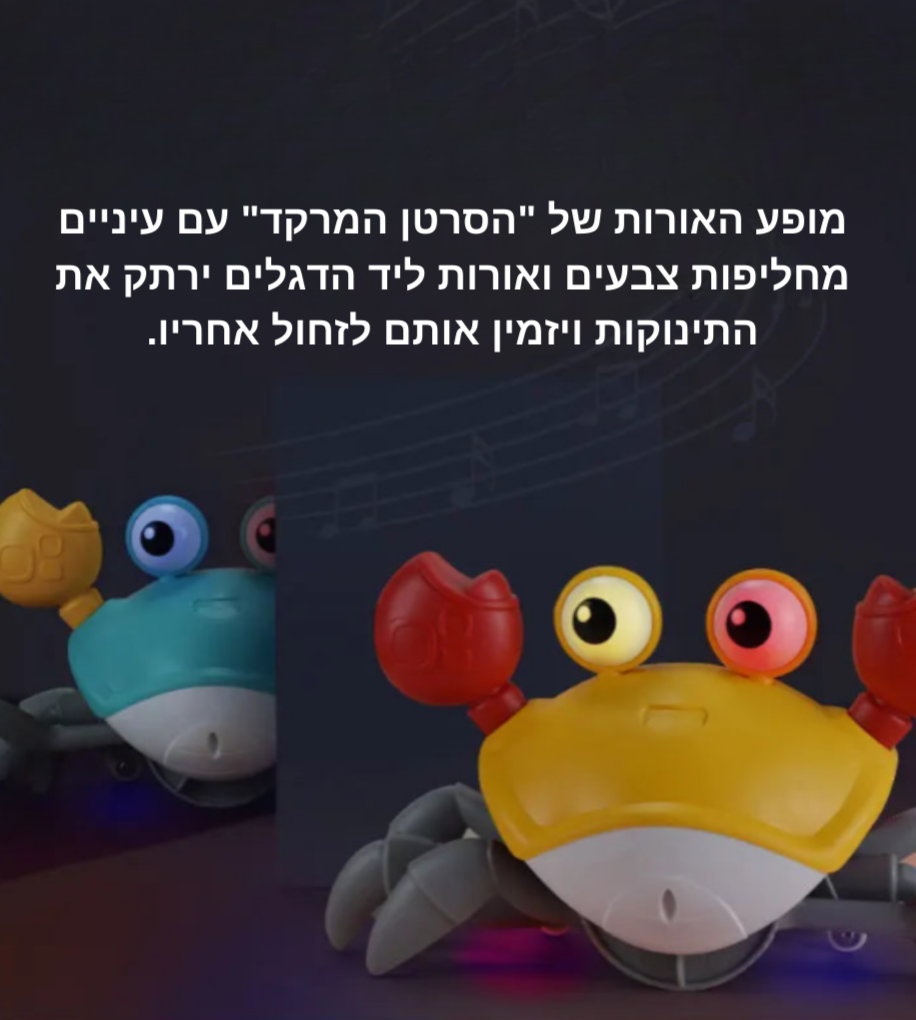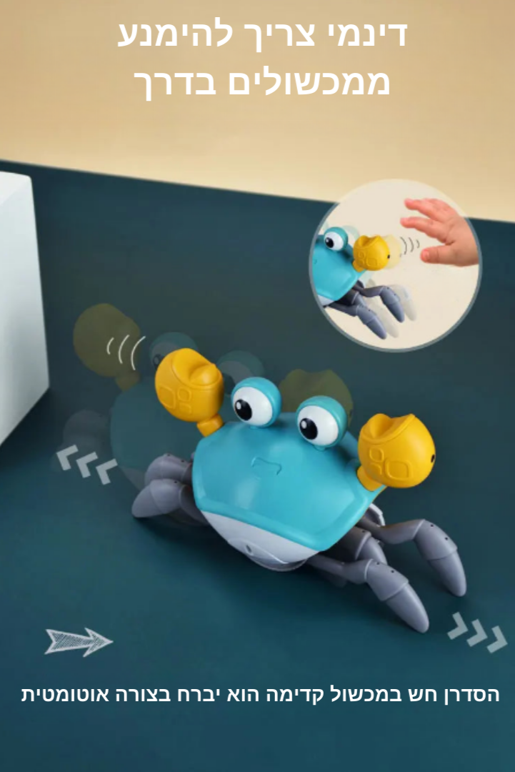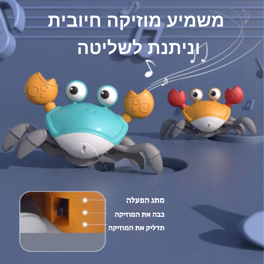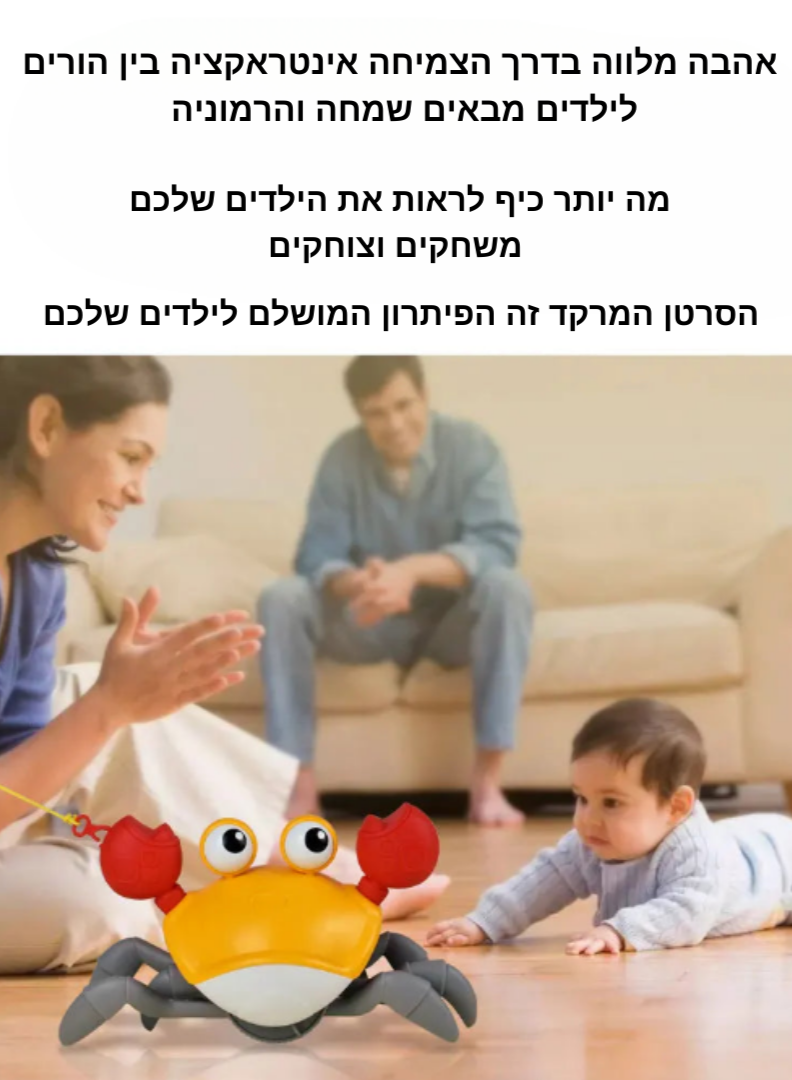 הסרטן זז בצורה חלקה על הרצפה, משמיע צלילים מהנים ומזמין את הילד לרדוף אחריו. זה לא רק משחק – זה גם כלי חינוכי שמקדם את ההתפתחות של הילד, גורם לו לזוז ולהישאר פעיל.