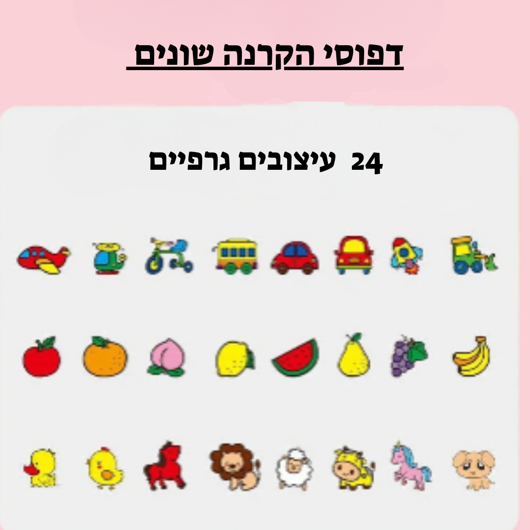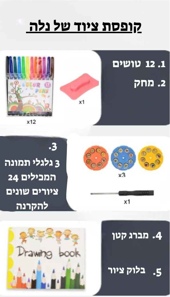 3 גלגלי תמונה המכילים 24 ציורים שונים להקרנה על משטח הצביעה לבחירת הילד.