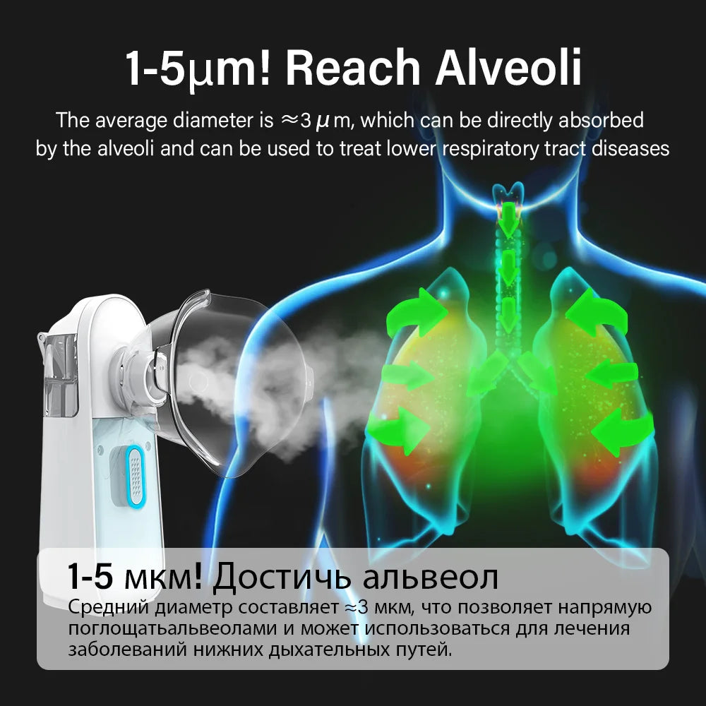 יוצר חלקיקים בגודל 1–5 מיקרון – מגיעים לנאדיות הריאה ביעילות.
